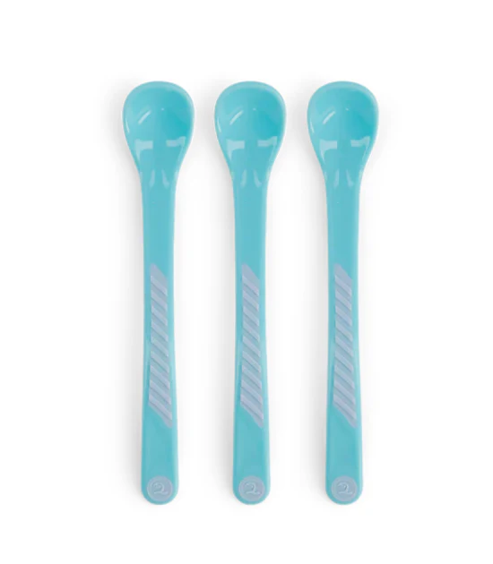 Cuillère longue et lisse pour les petites bouches avec prise ergonomique. Permet de bien récupérer tous les aliments des pots pour bébé profonds. Sans BPA. En lot de 3.
