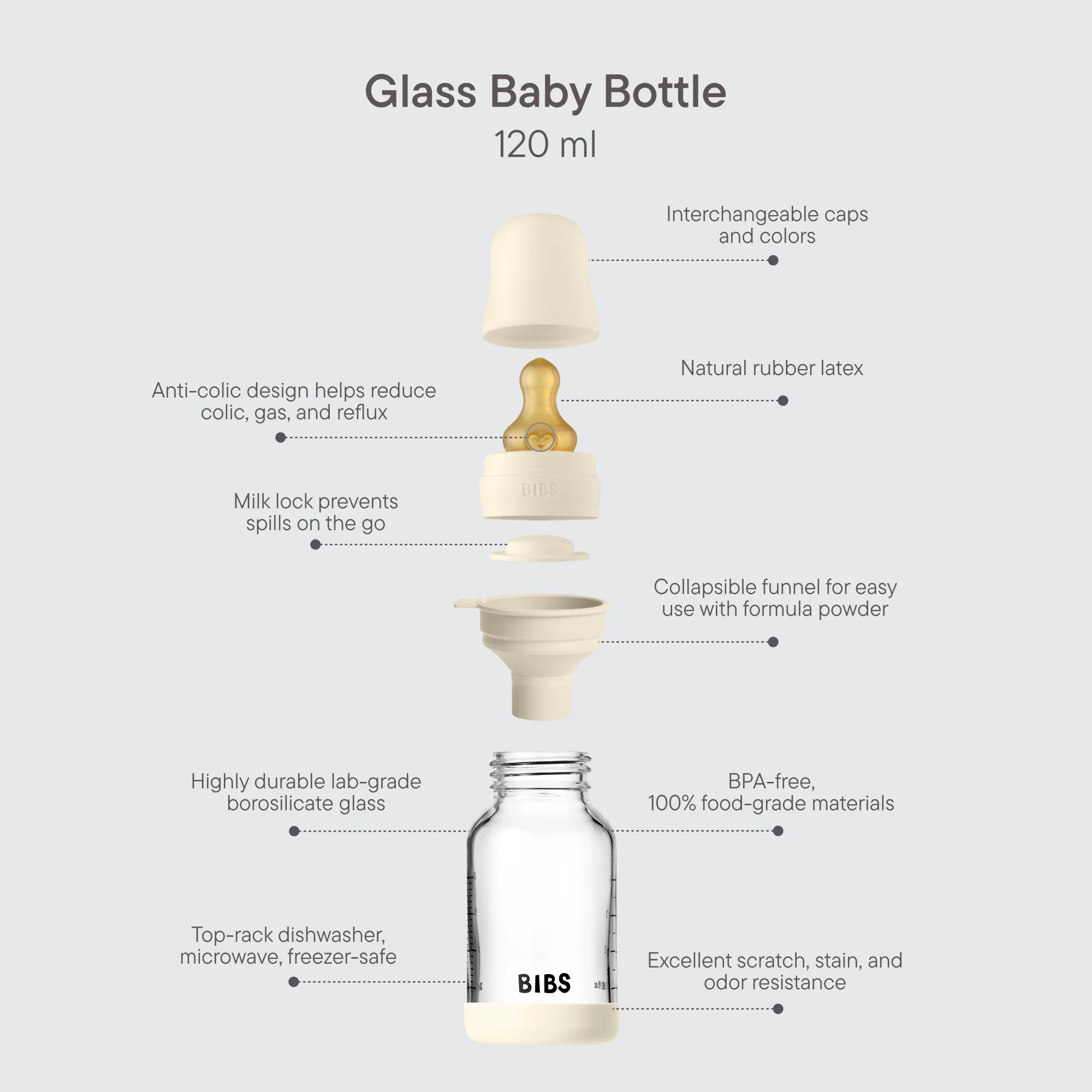 Biberon en Verre 120ml avec Tétine en Latex Débit lent – BIBS – Baby Blue
