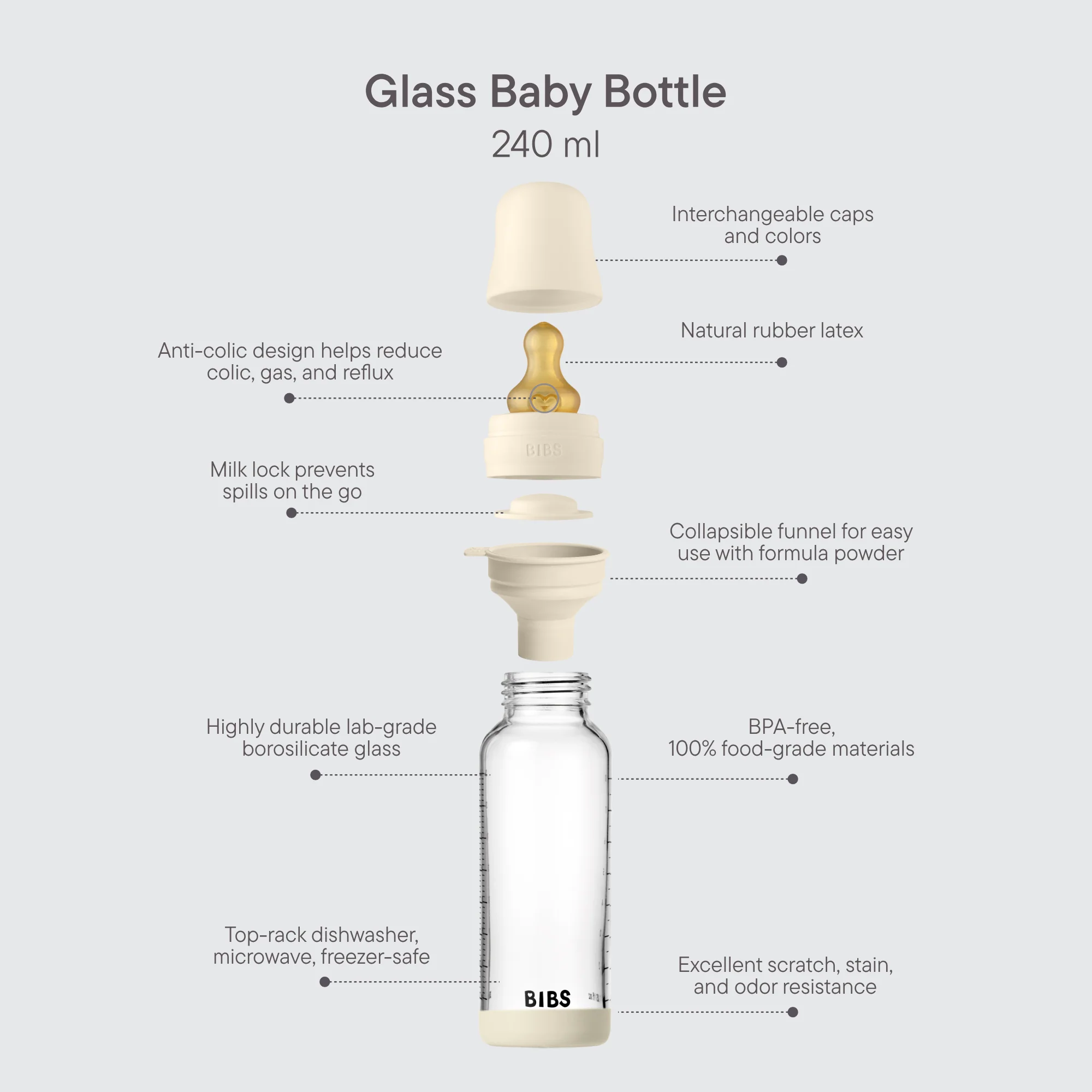 Biberon en Verre 240ml avec Tétine en Latex Débit Moyen – BIBS