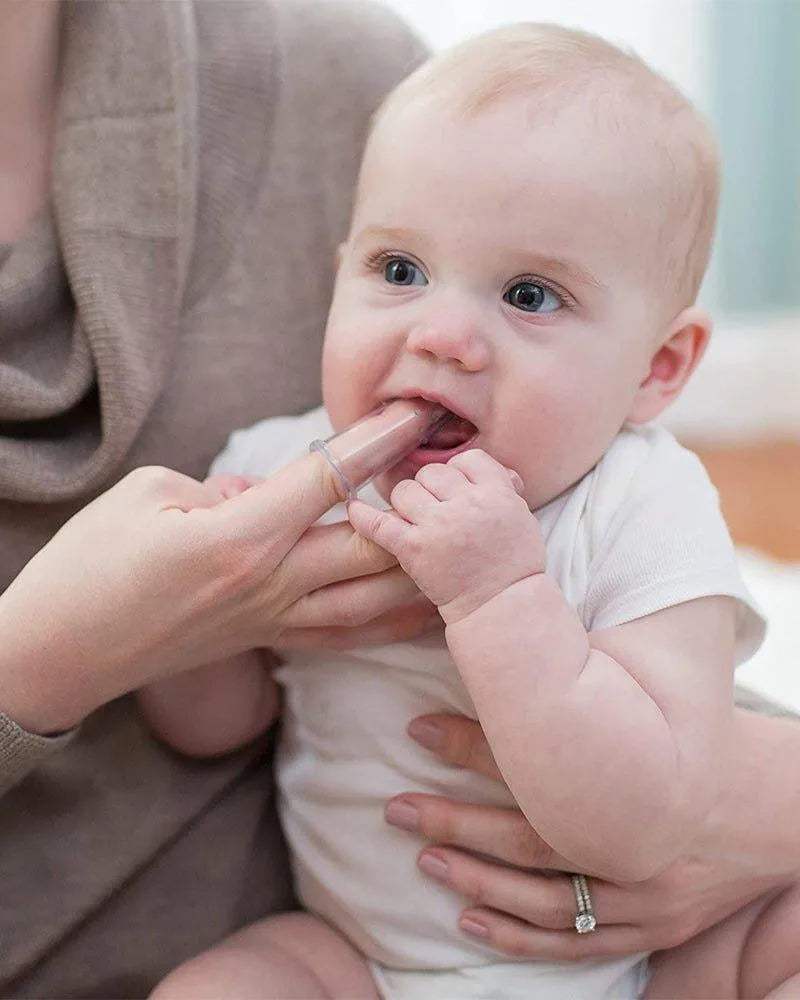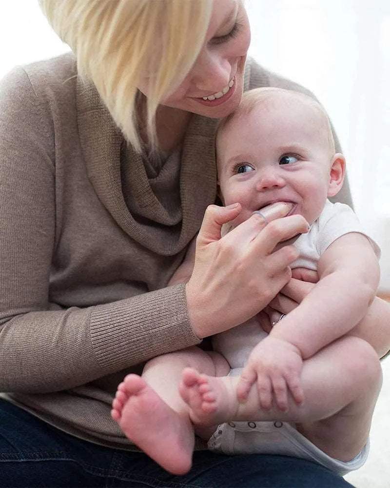 Apprenez à bébé de saines habitudes d’hygiène bucco-dentaire et blottissez-vous avec la brosse à dents douce 100 % silicone.