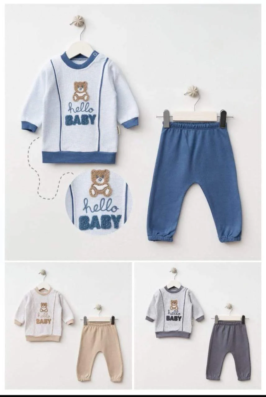 Ensemble 100% Cotton pour bébé Wrap your little one in soft, breathable comfort with this 100% cotton set .Give your baby the best, most gentle start with this high-quality, natural fabric.