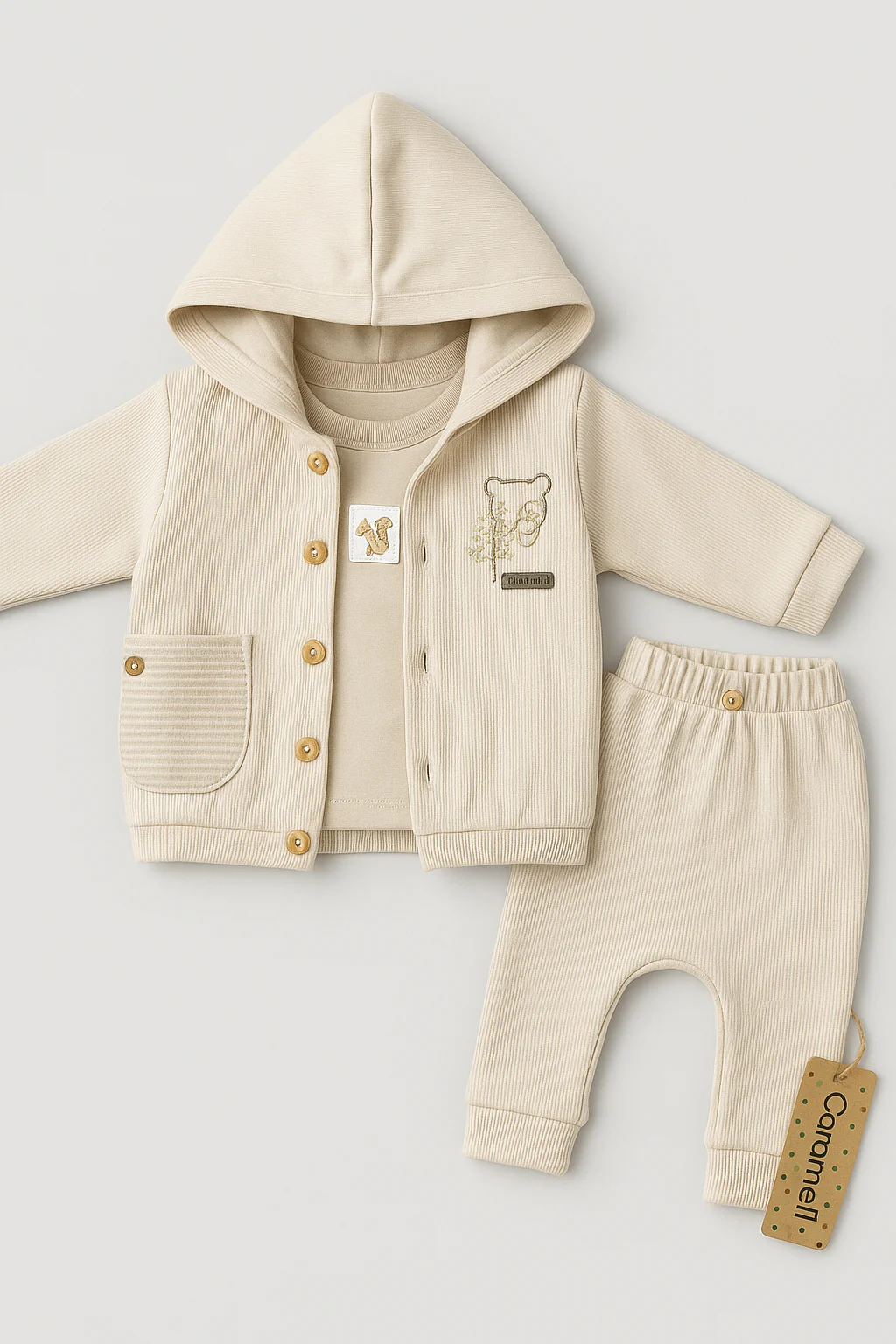 Ensemble 3 pièces coordonné et pratique pour un look complet. Couleur : Beige . Lot de 3 pièces.