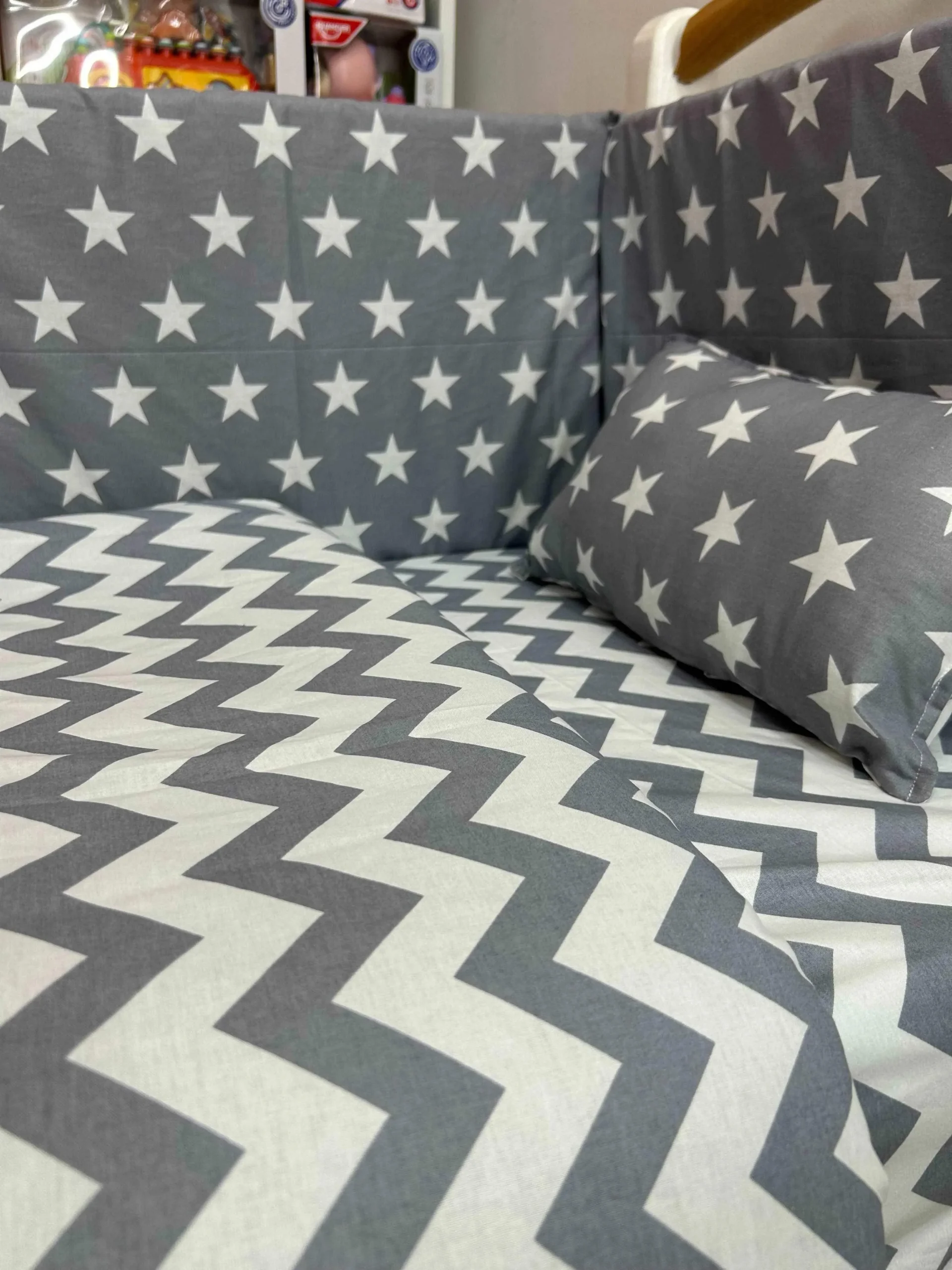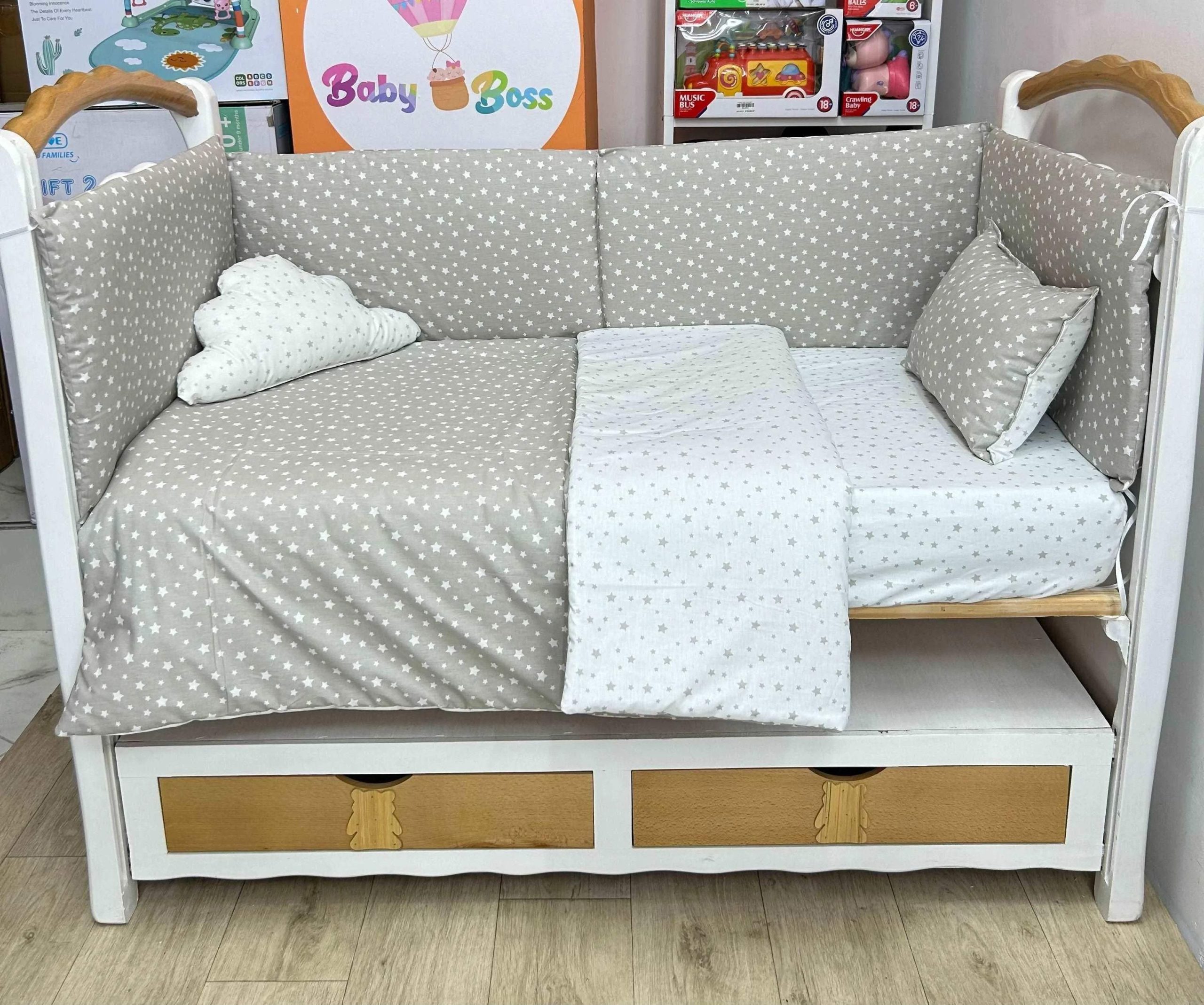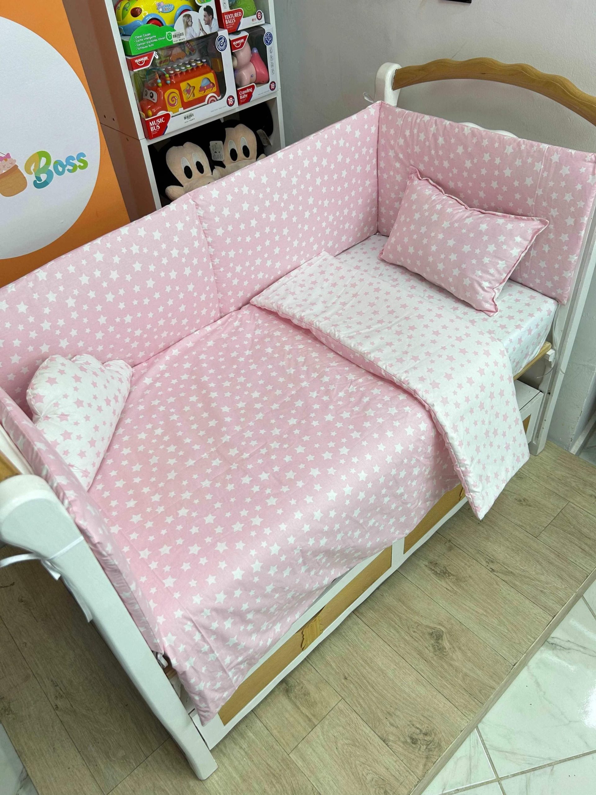 L’ensemble contient: ~tour de lit ~ couette ~housse de lit ~ oreiller ~coussin décoratif 100% Cotton
