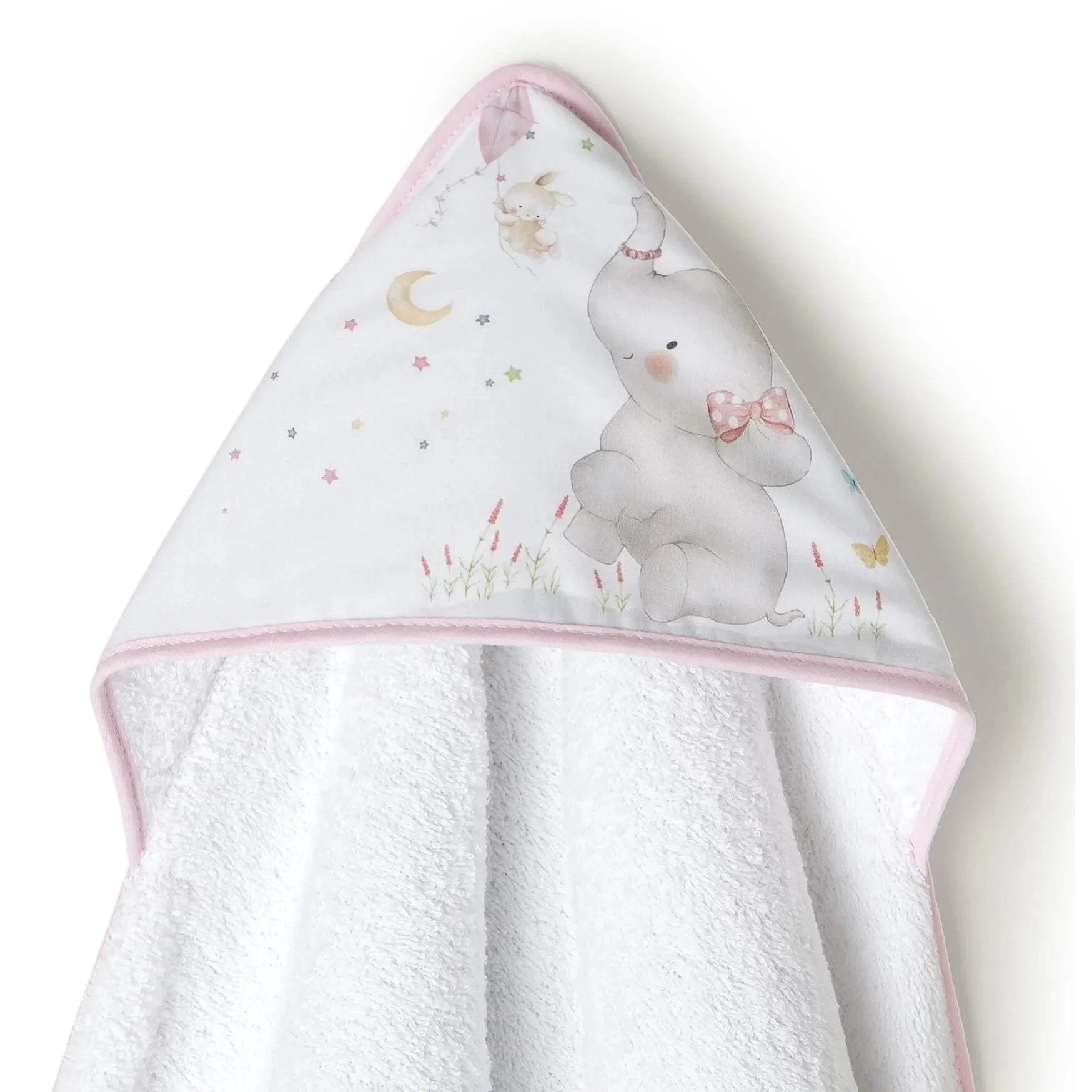 Ensemble Cape de Bain Éléphant avec Dou Dou dans le même ton Rose