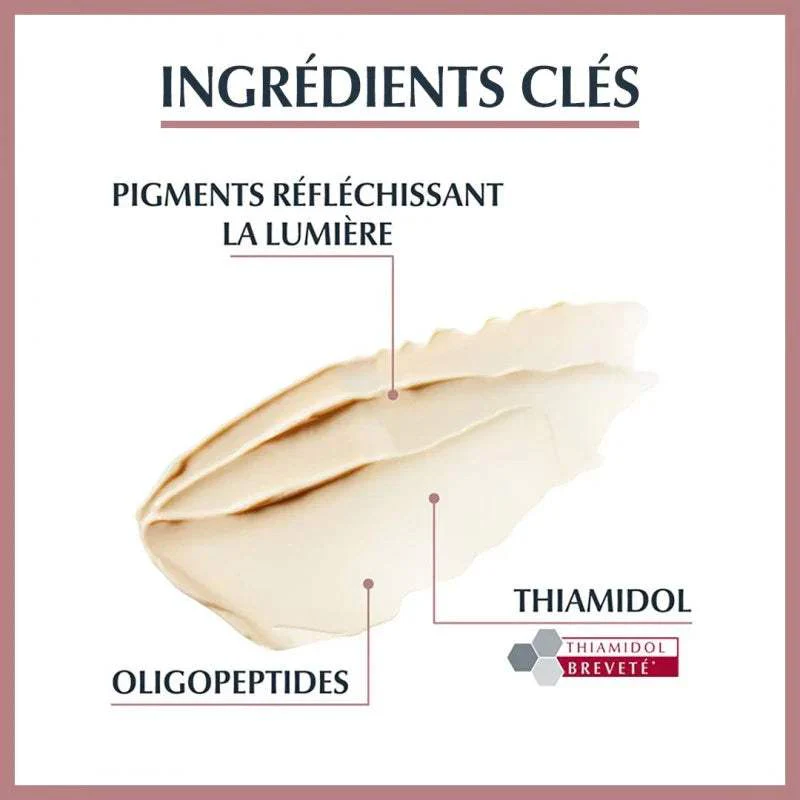Thiamidol® breveté: agit à la source de l’hyperpigmentation en réduisant la production de mélanine, diminuant ainsi les cernes foncs.