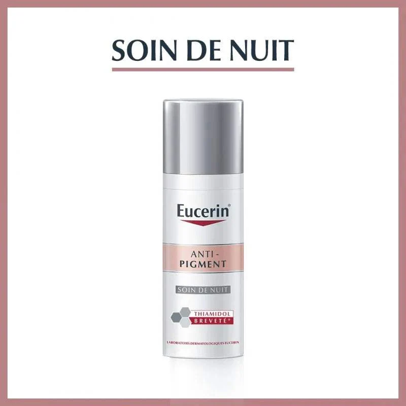 Eucerin ANTI-PIGMENT Soin de Nuit contient du Thiamidol, un ingrédient efficace et breveté qui agit à la base de l’hyperpigmentation en réduisant la production de mélanine. Il est cliniquement et dermatologiquement prouvé qu’il réduit les taches brunes et empêche leur réapparition. Les premiers résultats sont visibles après deux semaines et s’améliorent continuellement avec une utilisation régulière.