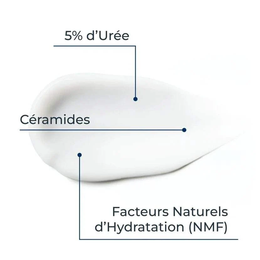 Urée (5%): hydrate intensément et exfolie en douceur les cellules mortes, améliorant ainsi la texture de la peu.