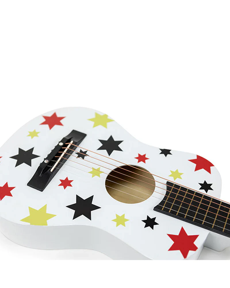 Avec cette jolie guitare imprimée d’étoiles rouges, noires et dorées, les petits activeront tous leurs sens et apprendront à faire leurs premiers pas dans le monde de la musique. Ses cordes sont hyper réalistes, comme s’il s’agissait d’une vraie guitare.