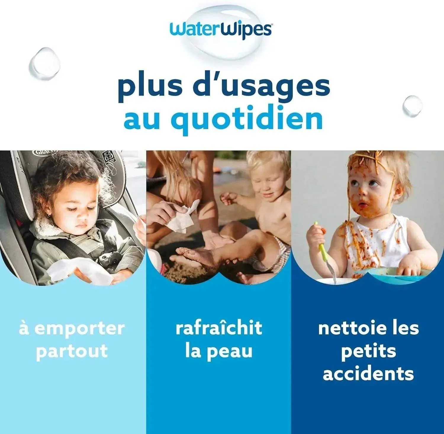 Utiliser une ou plusieurs lingettes WaterWipes pour nettoyer la peau de bébé.
