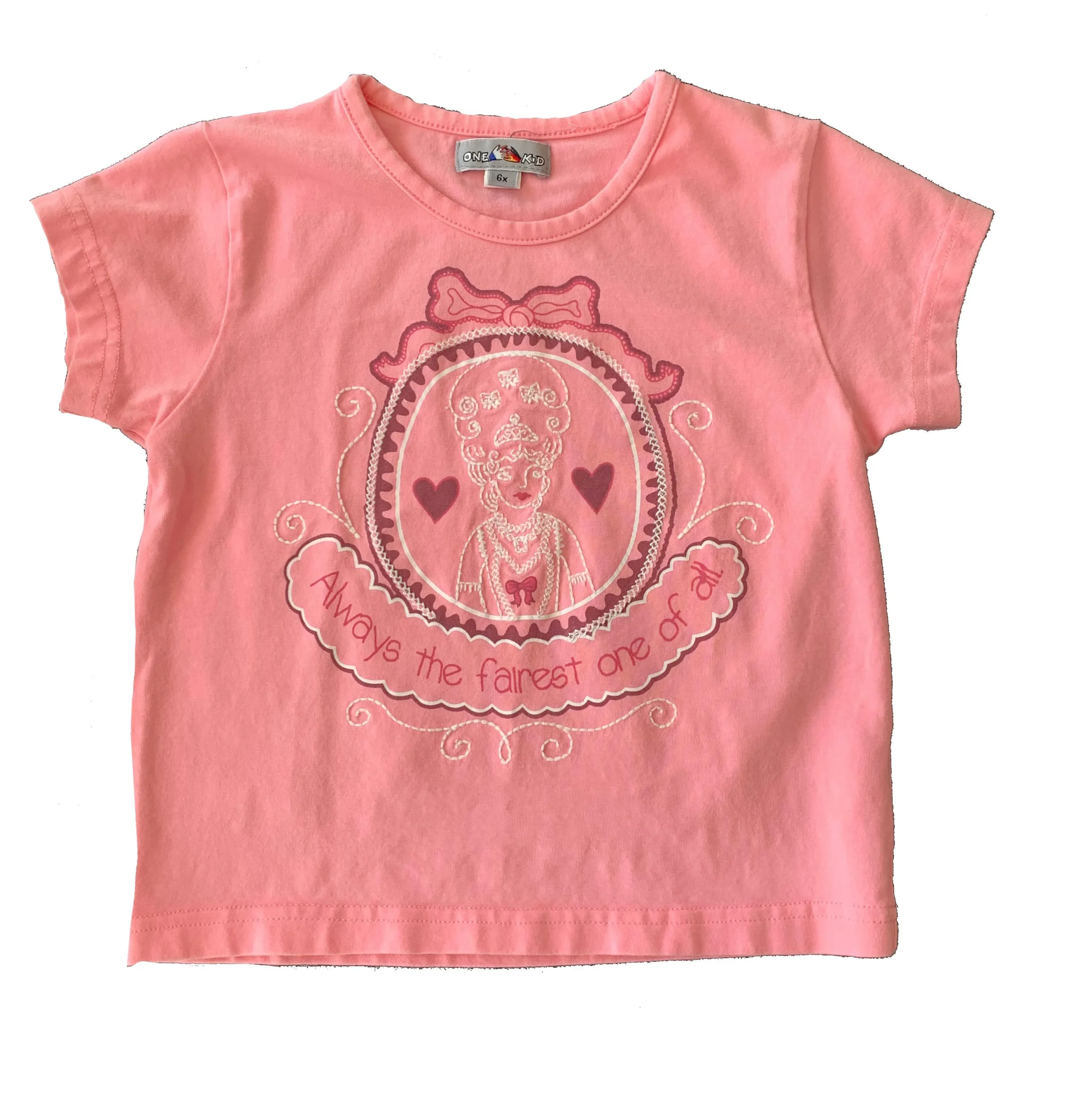 Chandail m/c 100% Coton rose motif cadre photo + broderie devant. One Kid 6a Très bon état