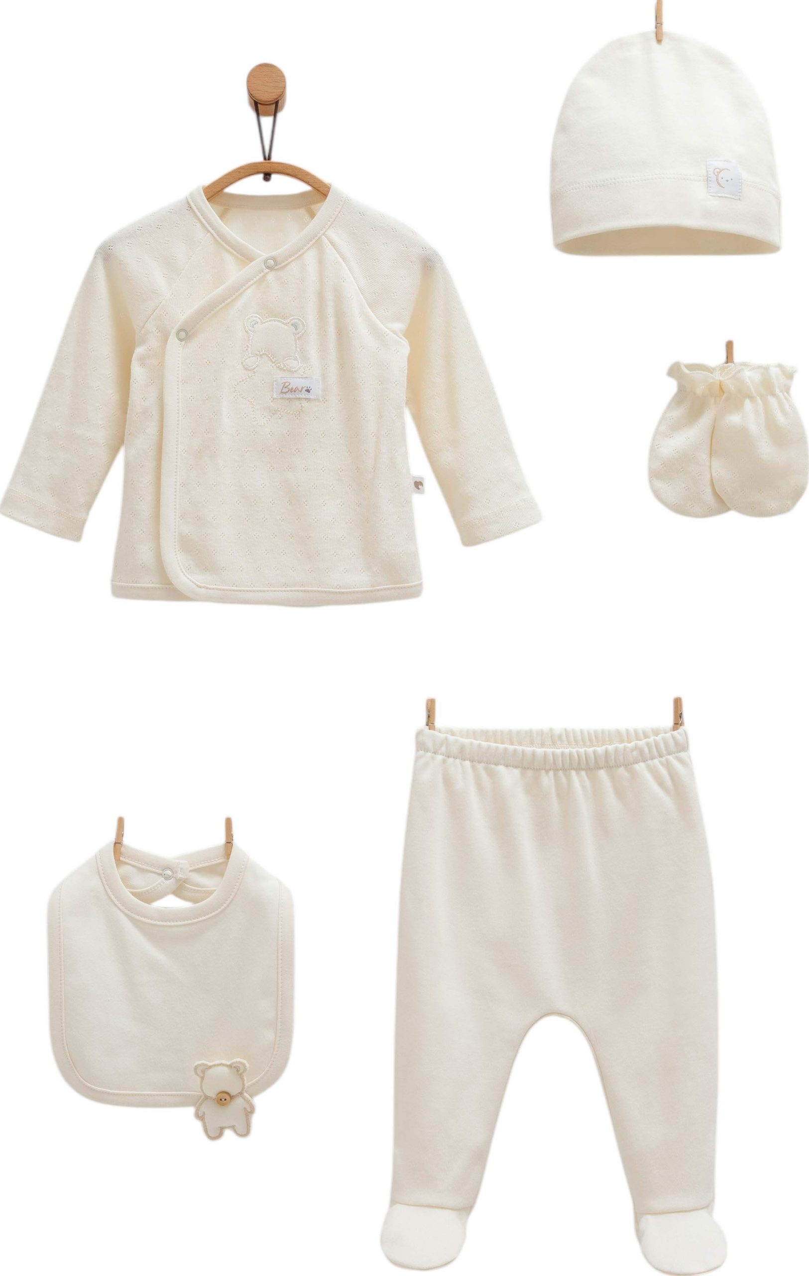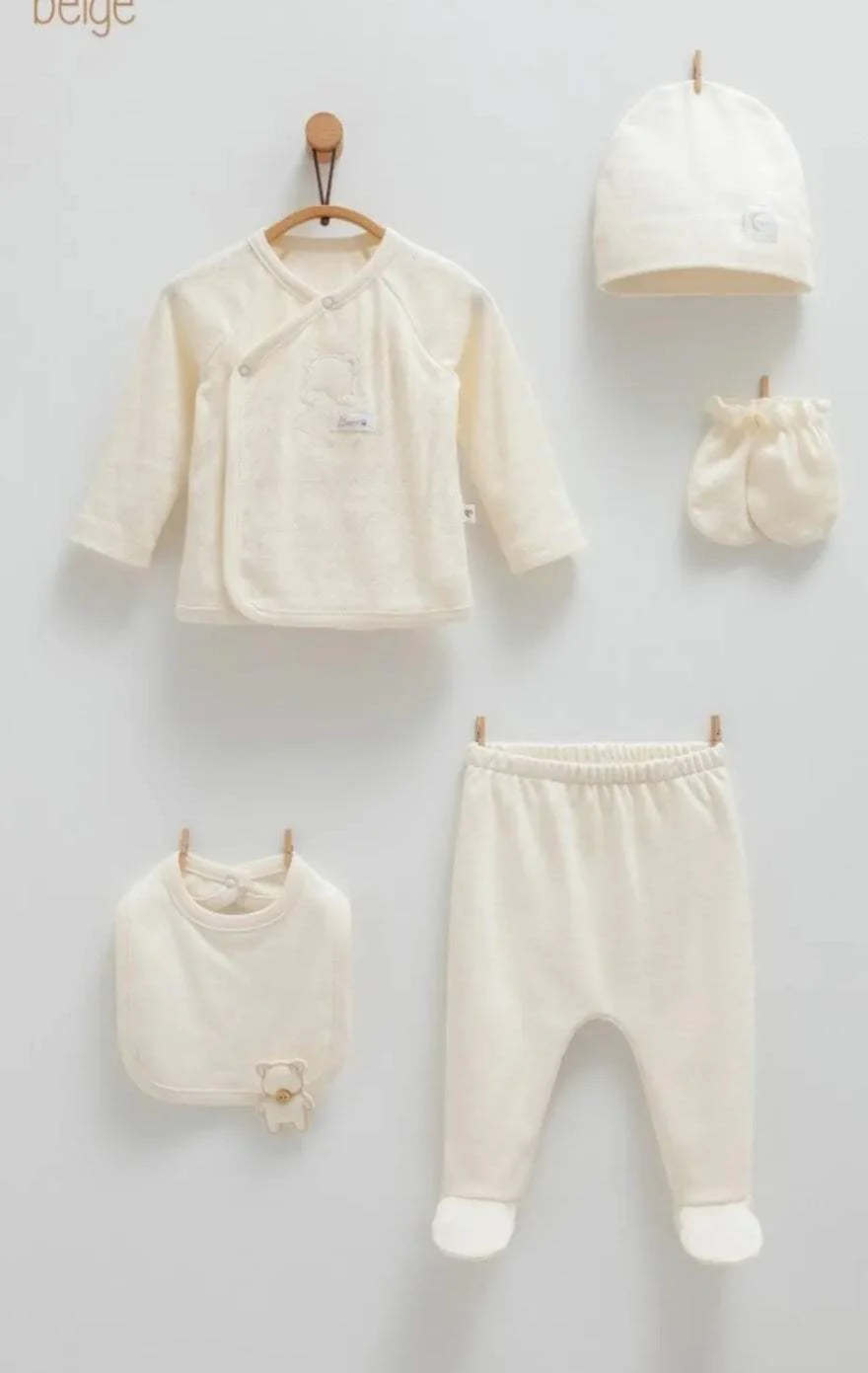 Pack de 5 pieces en coton pour bébé, couleur beige