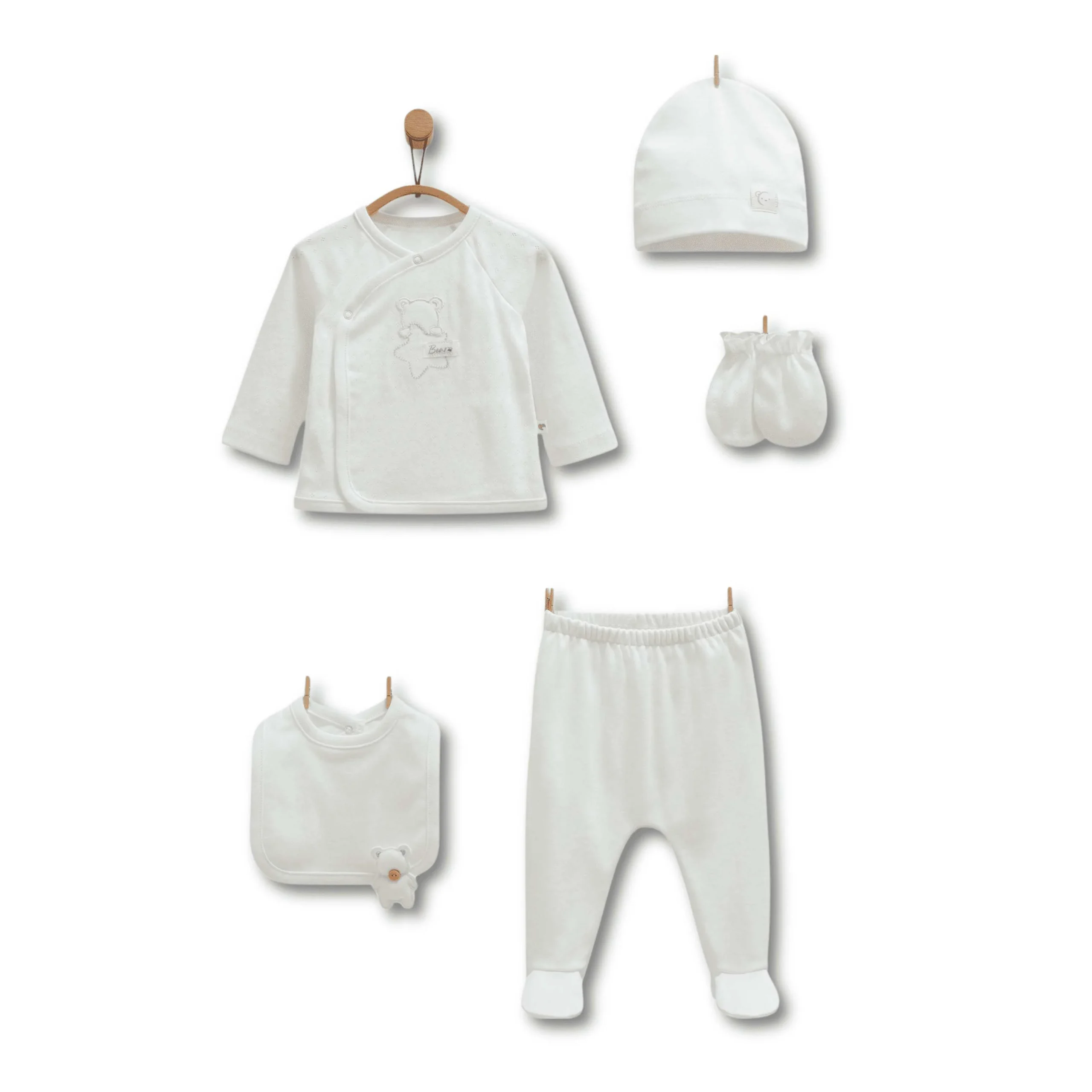 Pack de 5 pieces en coton pour bébé, couleur écru
