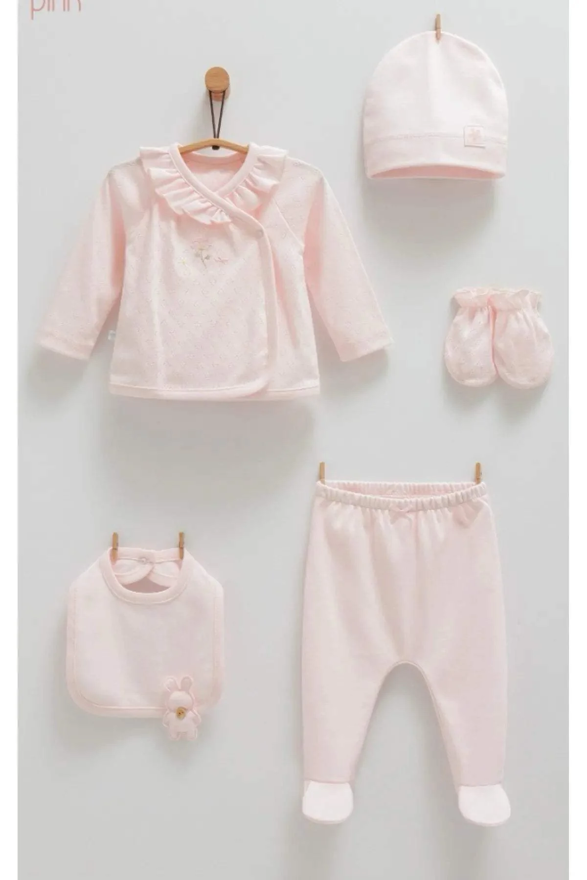 Pack de 5 pieces en coton pour bébé, couleur rose