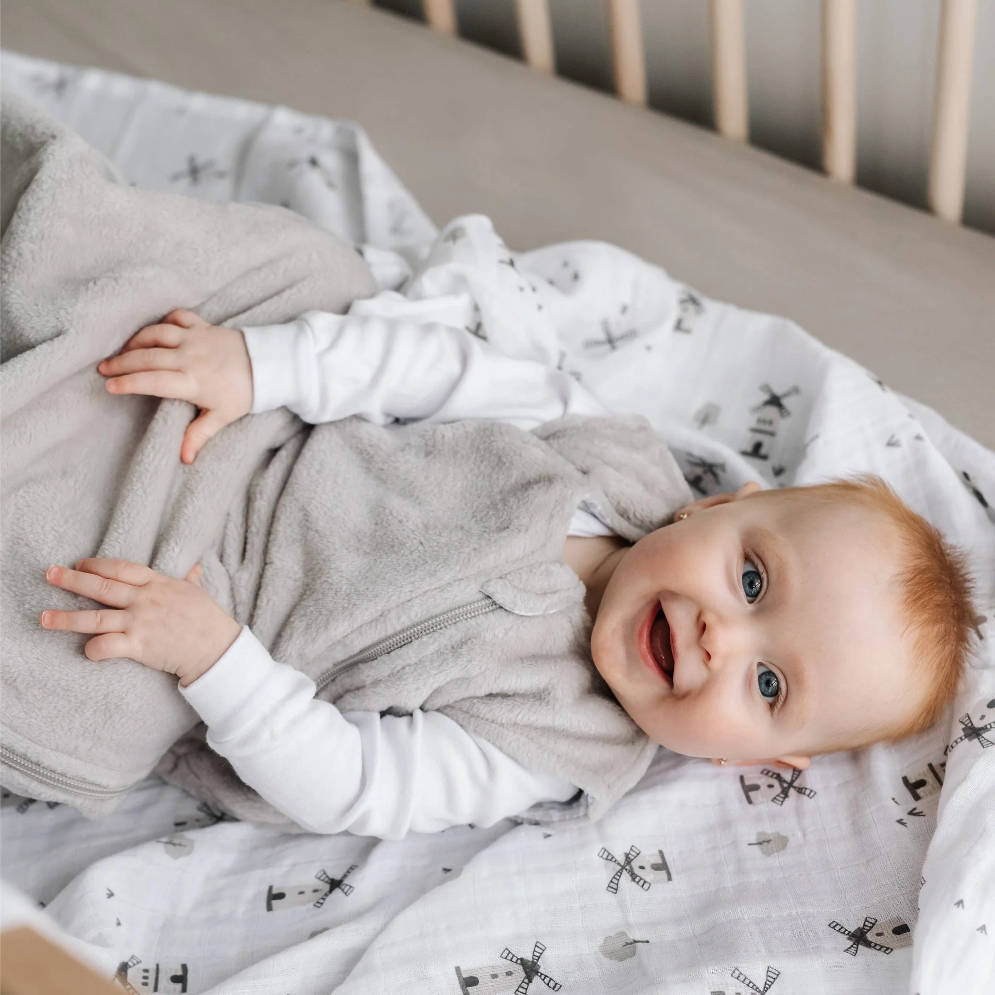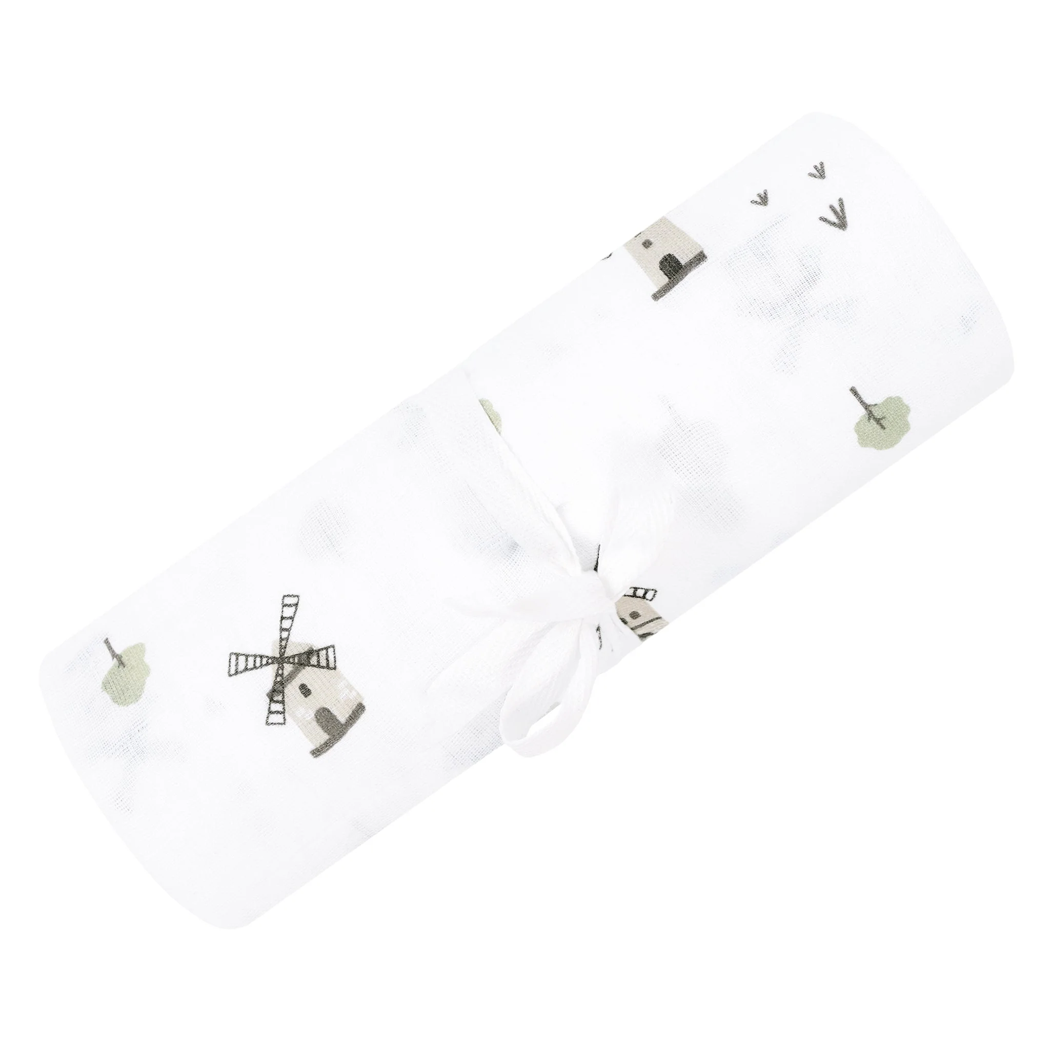 Couverture d’emmaillotage de mousseline 100% coton. Pré-lavée et ultra légère, cette couverture multi-usages en mousseline est de manière à permettre à l’air de circuler de façon optimale.