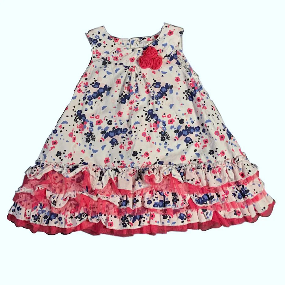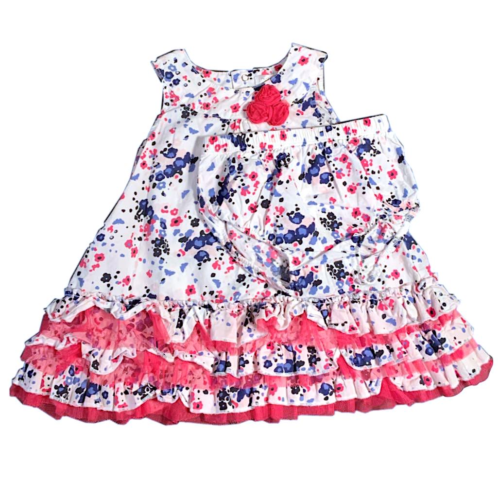 Robe 100% coton blanc fleuri bleu et rose avec petite culotte assortie. Petit Lem 12ms Comme Neuf!