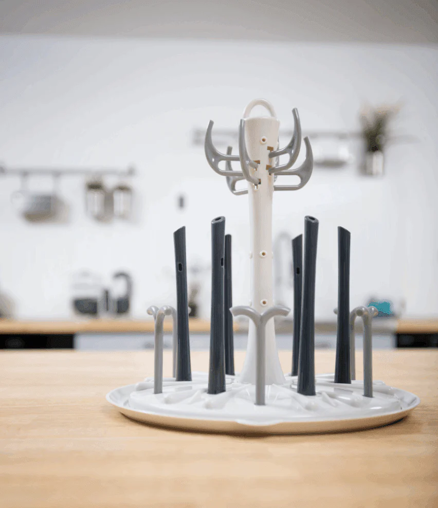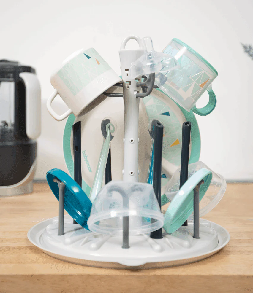 Avec le sèche biberon Babymoov, vous rangez facilement et au même endroit biberons, tétines, capuchons et même tire-lait.