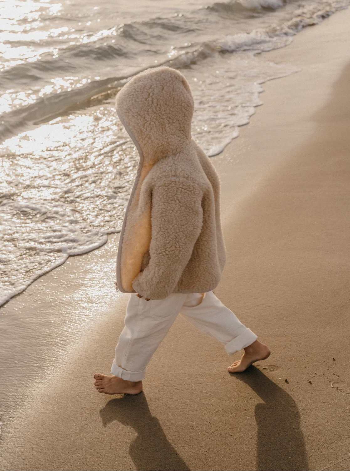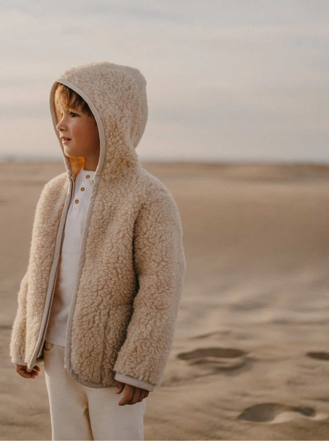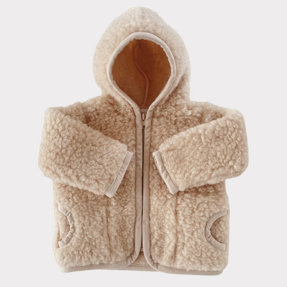 La veste à capuche 100% laine naturelle de la collection Skin de Miijo est idéale pour la mi-saison et le plein hiver.